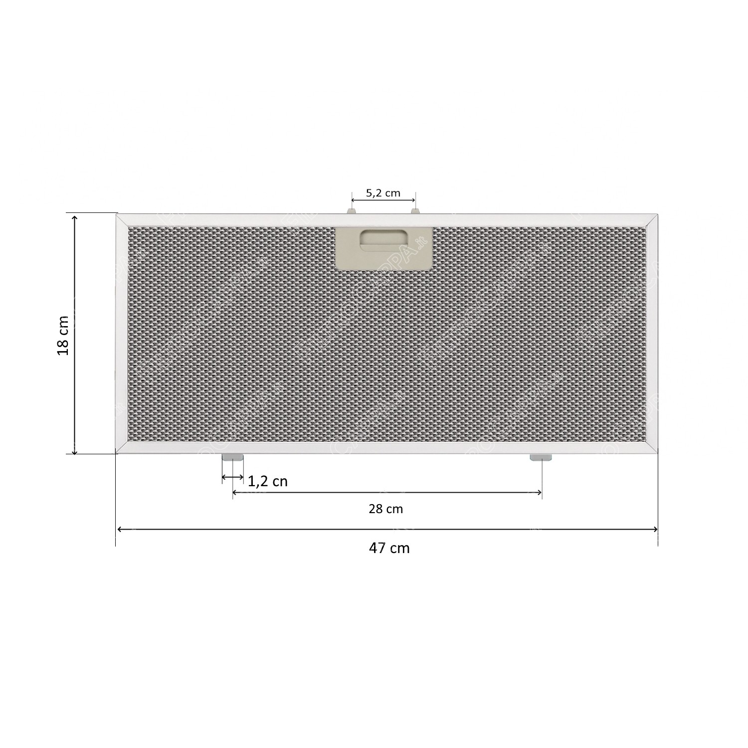 Filtro de grasa de aluminio de dimensiones 47 x 18 cm, diseñado para campanas extractoras empotrables bajo mueble FIM KAPPE K120