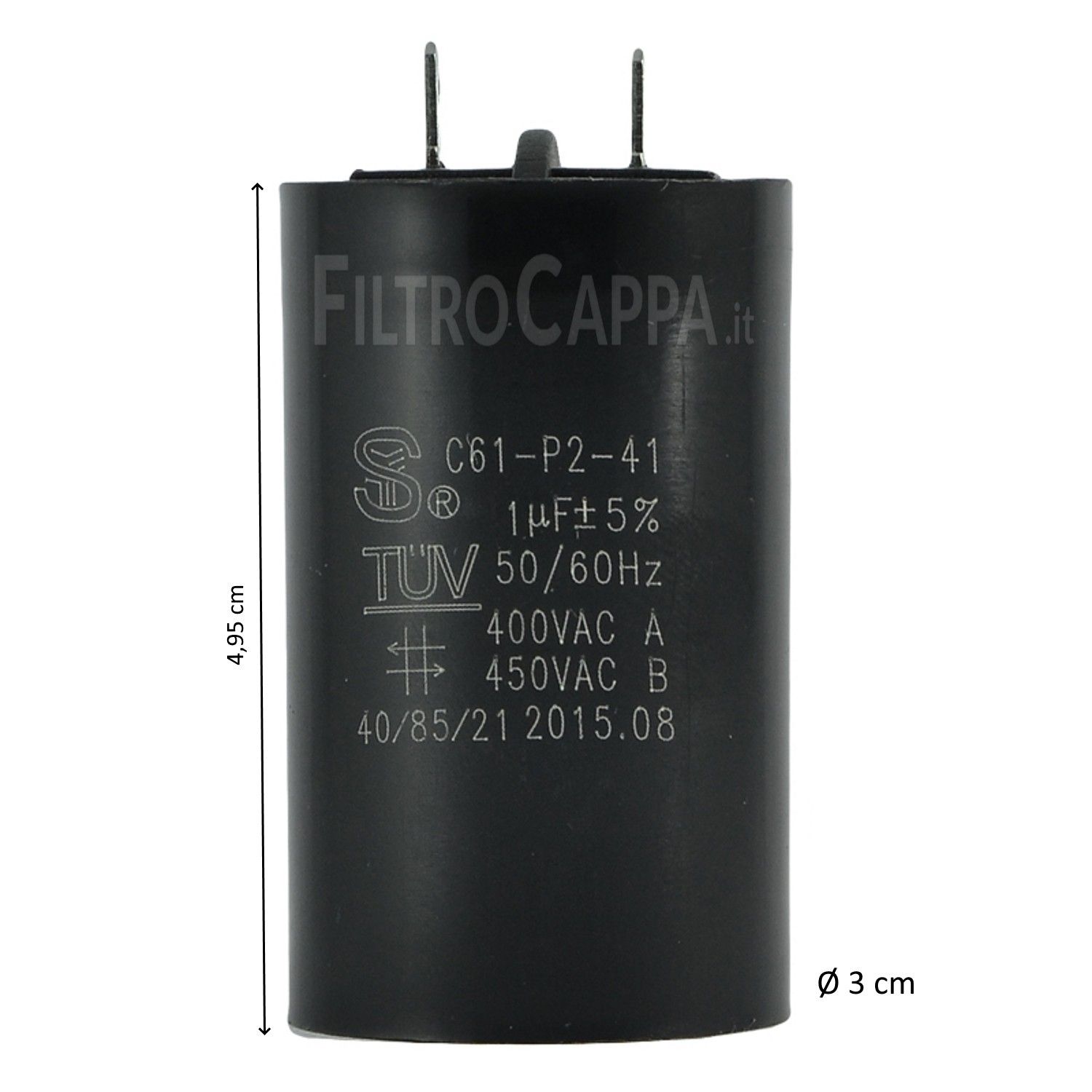 Condensateur de démarrage pour moteurs VORTICE d'une capacité de 1 µF, conçu pour assurer le bon fonctionnement du moteur électrique et un démarrage stable. Pièce de rechange compatible avec les modèles de ventilateurs VORTICE mentionnés.