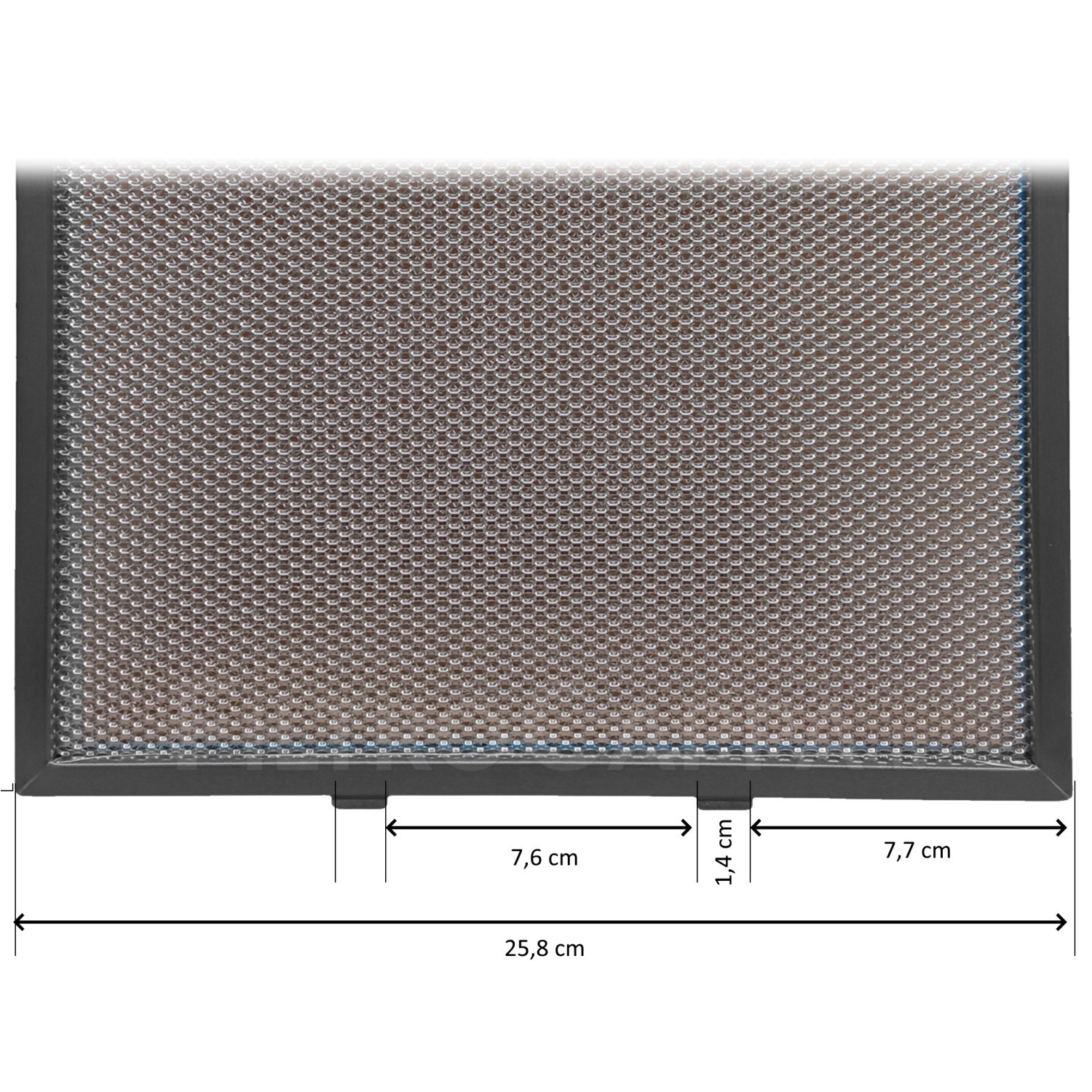 Lo spessore è conforme allo standard dei filtri metallici per cappe domestiche, garantendo un’efficace trattenuta dei grassi e la protezione del gruppo motore.